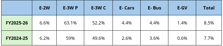 India’s EV Penetration Reached 8.5% in FY2025-26