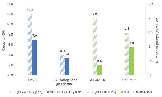 The Pradhan Mantri Kisan Urja Suraksha evam Utthaan Mahabhiyan (PM-KUSUM) scheme was launched in 2019 and in FY2020-21, expanded to add a total solar capacity of 30.8 GW by 2022 from the initial target of 25.7 GW.
