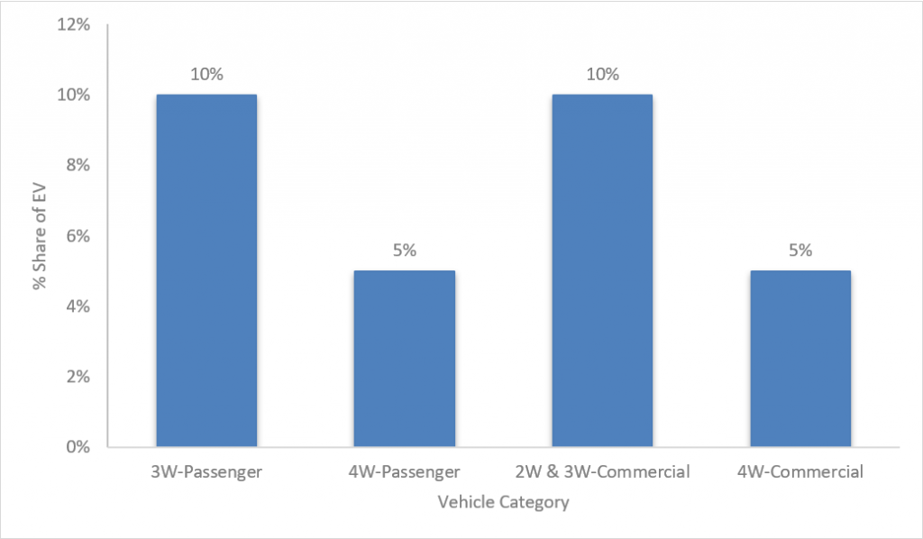 Within first 6 months from the day of notification of the scheme, the aggregators of different vehicle categories are required to have 5-10% of all new onboarded fleets to be electric vehicles, as shown in the below chart.