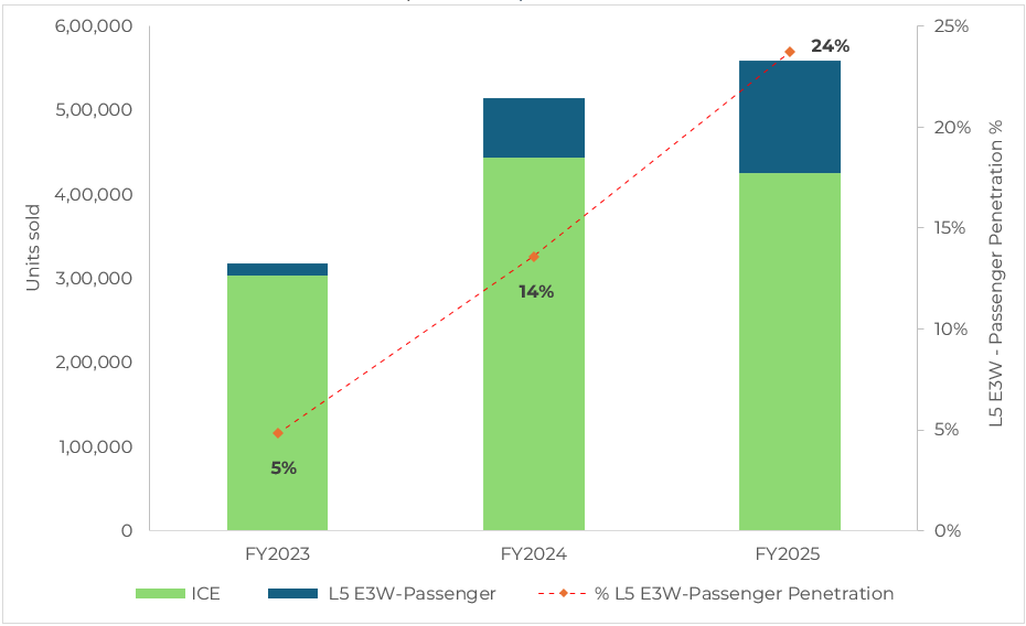 Figure 1: L5 E3W-Passenger Sales trend and Penetration (FY2023-FY2025)