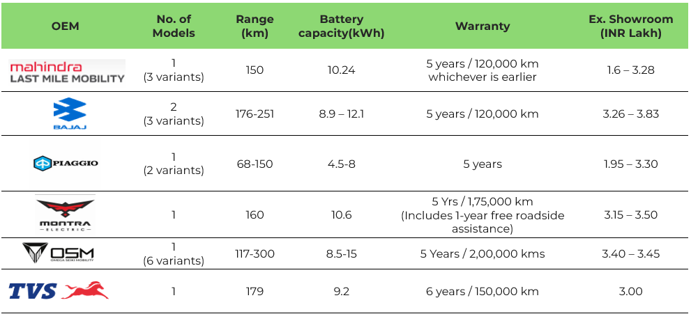 Table 1: Product details of Leading OEM’s in L5 E3W passenger segment