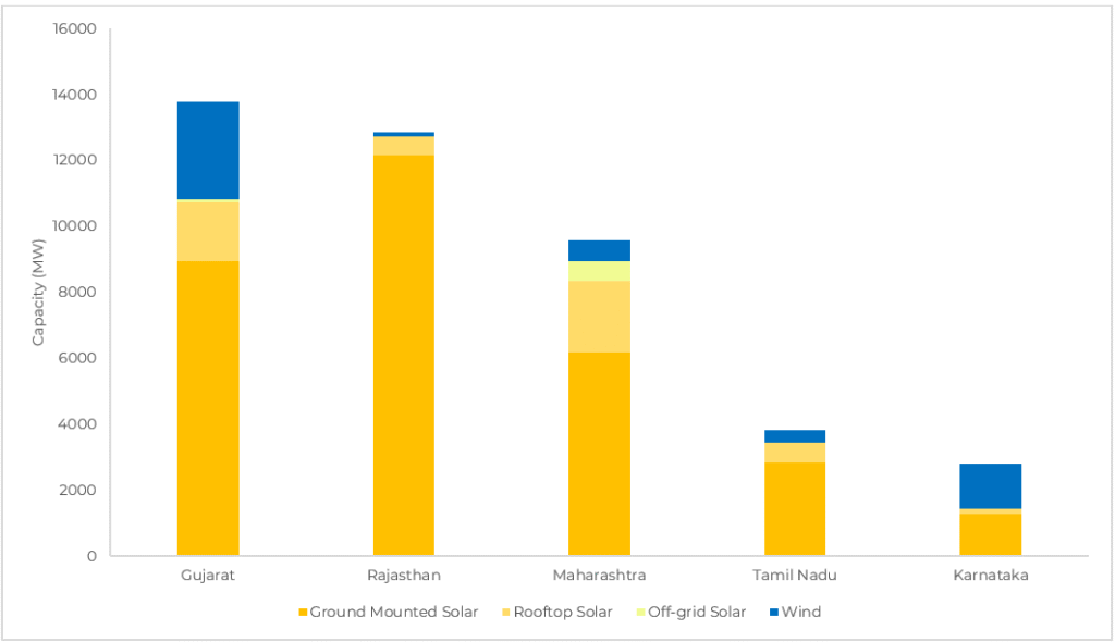 Figure 3. State-wise utility scale solar and wind capacity addition in India in FY2026