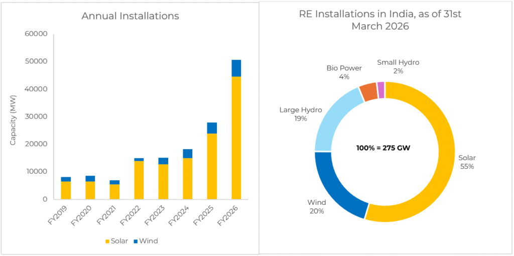 India Installs Record 44 GW Solar and 6 GW Wind Capacity in FY2026