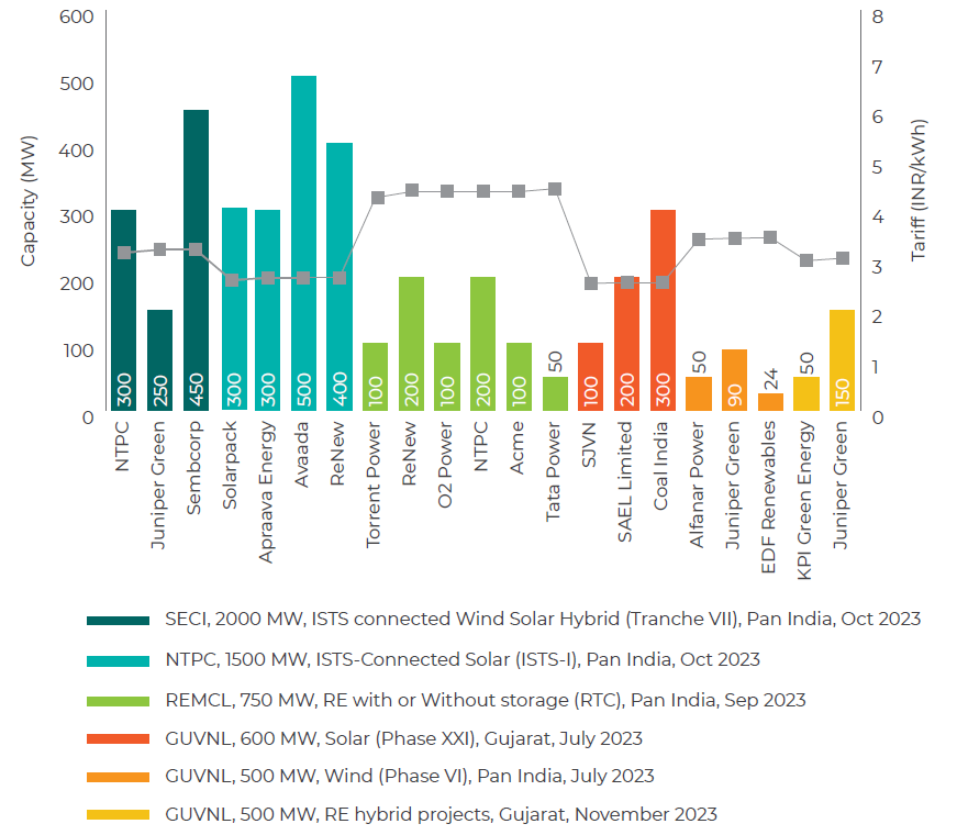 24 | · Alfanar Power – 50 MW (INR 3.42/kWh)· Juniper Green – 90 MW (INR 3.44/kWh)· EDF Renewables India – 24 MW (INR 3.45/kWh) | |