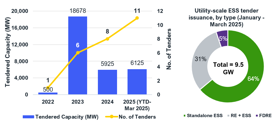 Standalone ESS account for 64% of utility-scale tendering activity in Q12025