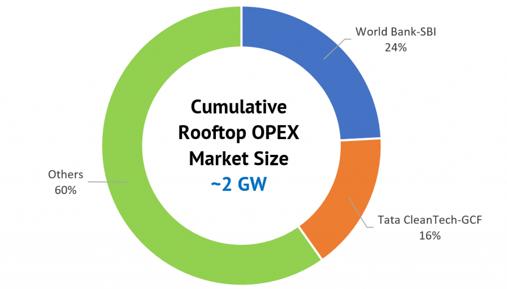 The World Bank-SBI line and Tata Cleantech-GCF together account for 40% of the OPEX market as illustrated below.