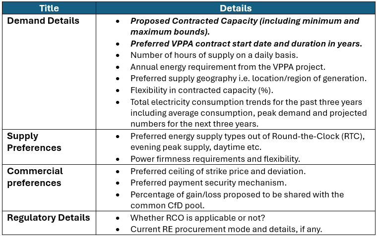The EoI invites participation from a wide range of entities, including those obligated under the Renewable Consumption Obligation (RCO) framework as well as organizations voluntarily seeking renewable energy attributes through VPPA structures. Eligible participants comprise open-access consumers, captive users, large commercial and industrial enterprises, public sector undertakings, data centers, and other electricity-intensive consumers.